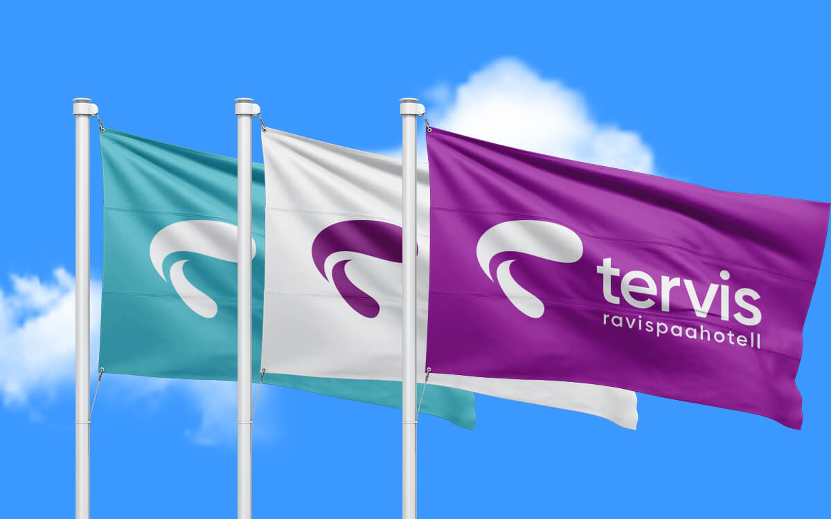 Tervise logo koosneb märgist ja tekstiblokist. Logo märk esitab T-tähe kujulist vee liikumist. Logo märk kujutab T-tähe kuju võtvat vee liikumist ja annab visuaalselt edasi veel omadusi, nagu tervis, värskus, selgus, muutumine, erksusus, energia ja plastiline liikumine. Neid omadusi toetavad omalt poolt ka korporatiivsed värvid koos valgega.
