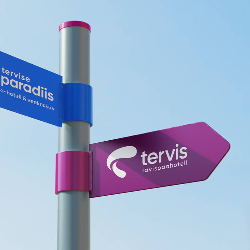 Logo märk on Tervise signatuur – brändi essents ja majakas. Logo märk esitab p-tähe kujulist vee liikumist ja annab visuaalselt edasi veele omistatavaid omadusi - tervis, värskus, selgus, muutumine, erksusus, energia ja plastiline liikumine.