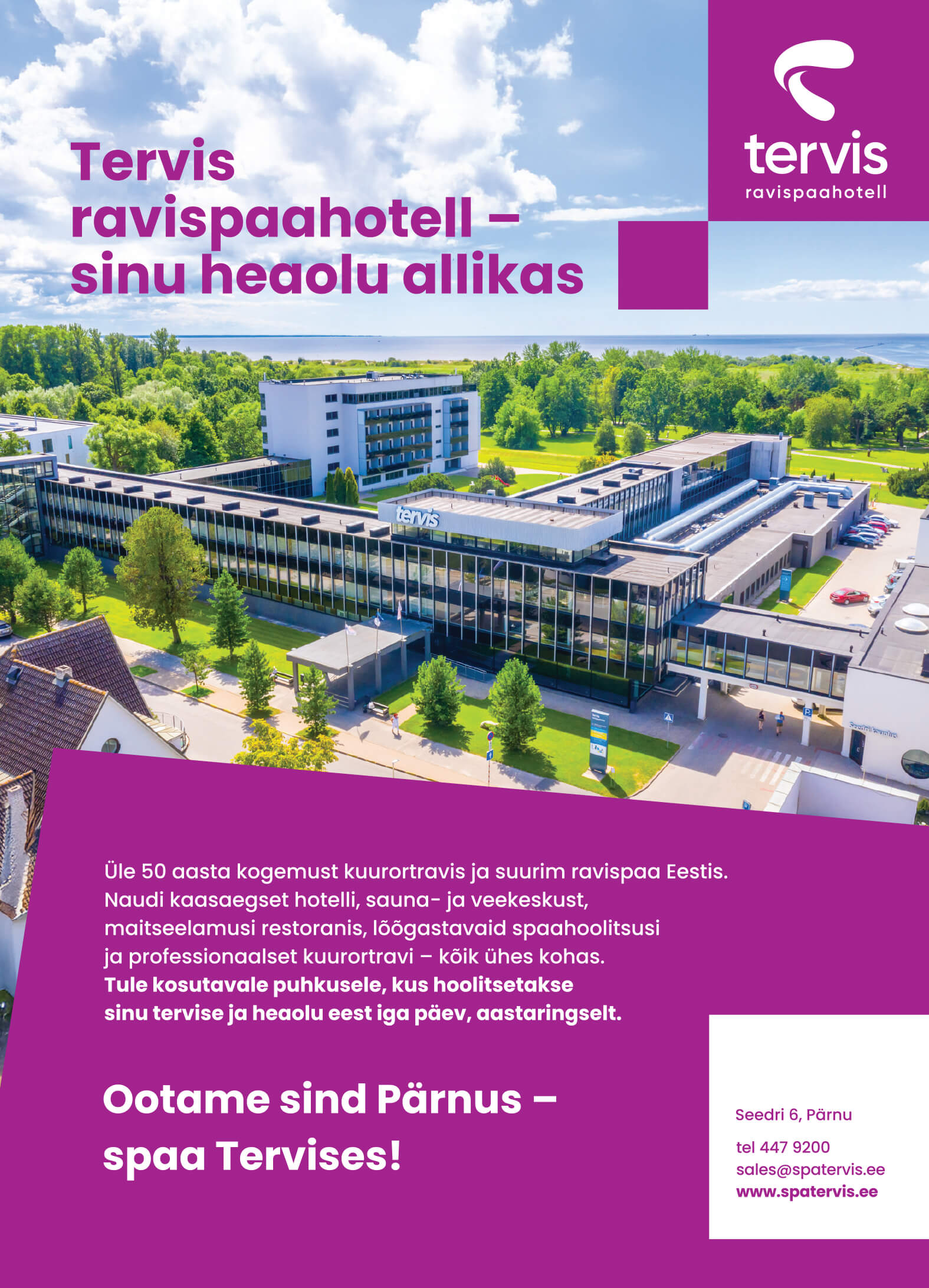 ... Eesti suurim ravispaahotell, mis on professionaalset kuurortravi pakkunud juba üle 50 aasta. Lisaks tänapäevastele tingimustele vastavale 494 voodikohaga hotellile on Tervises ka suur ravikompleks, restoran ja baarid, sauna- ja veekeskus, konverentsikeskus ja kauplus.